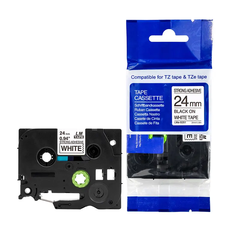 LM Tape Compatible TZe-S251 1″ Black On White Extra Strength Tape, 24mm